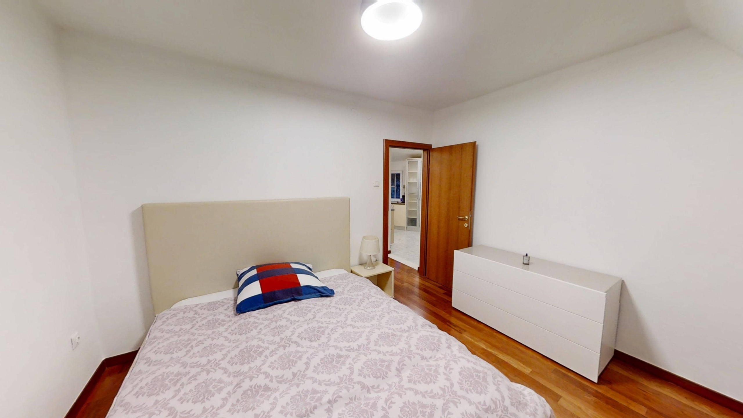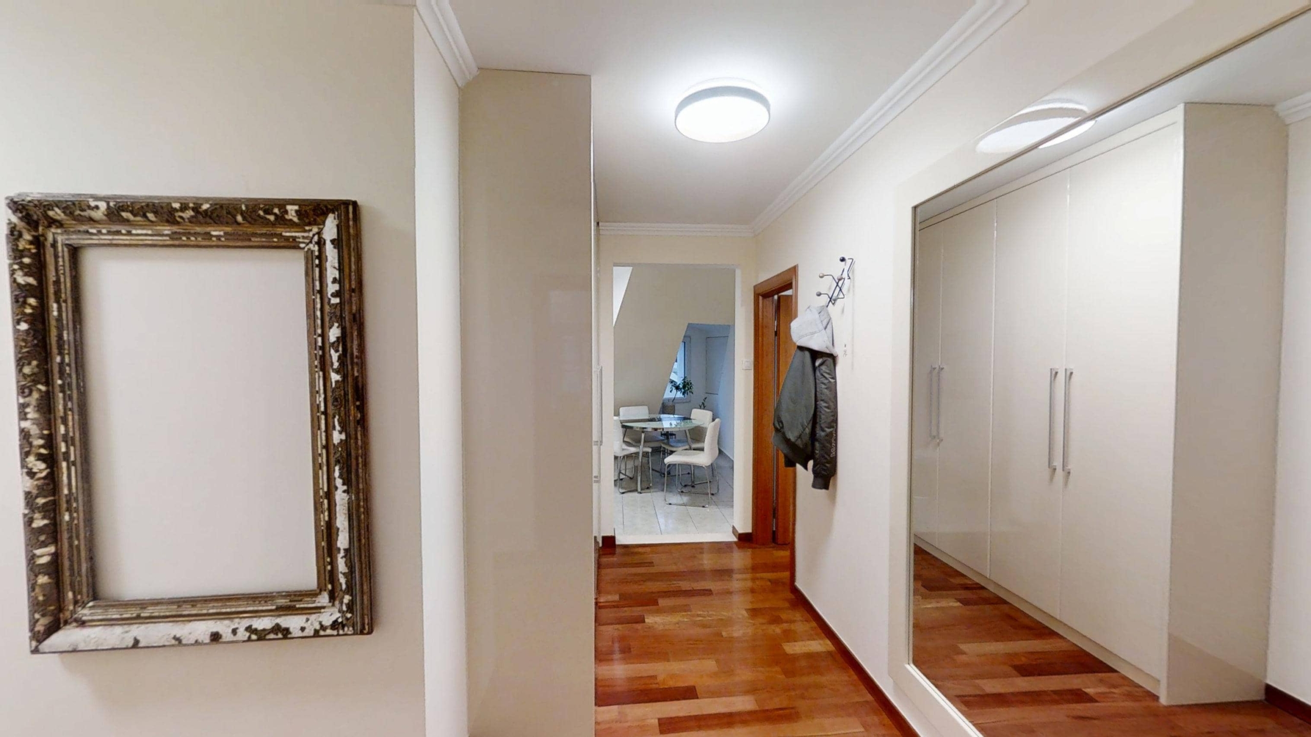 Sastoji se od hodnika, kuhinje, blagovaonice, dnevnog boravka, dvije spavaće sobe, kupaonice te balkona.