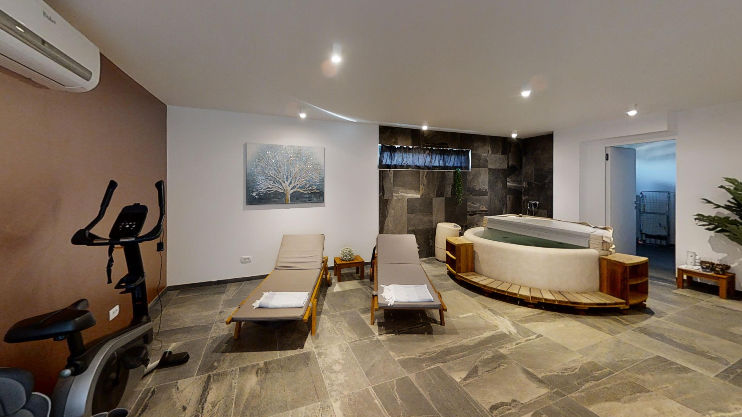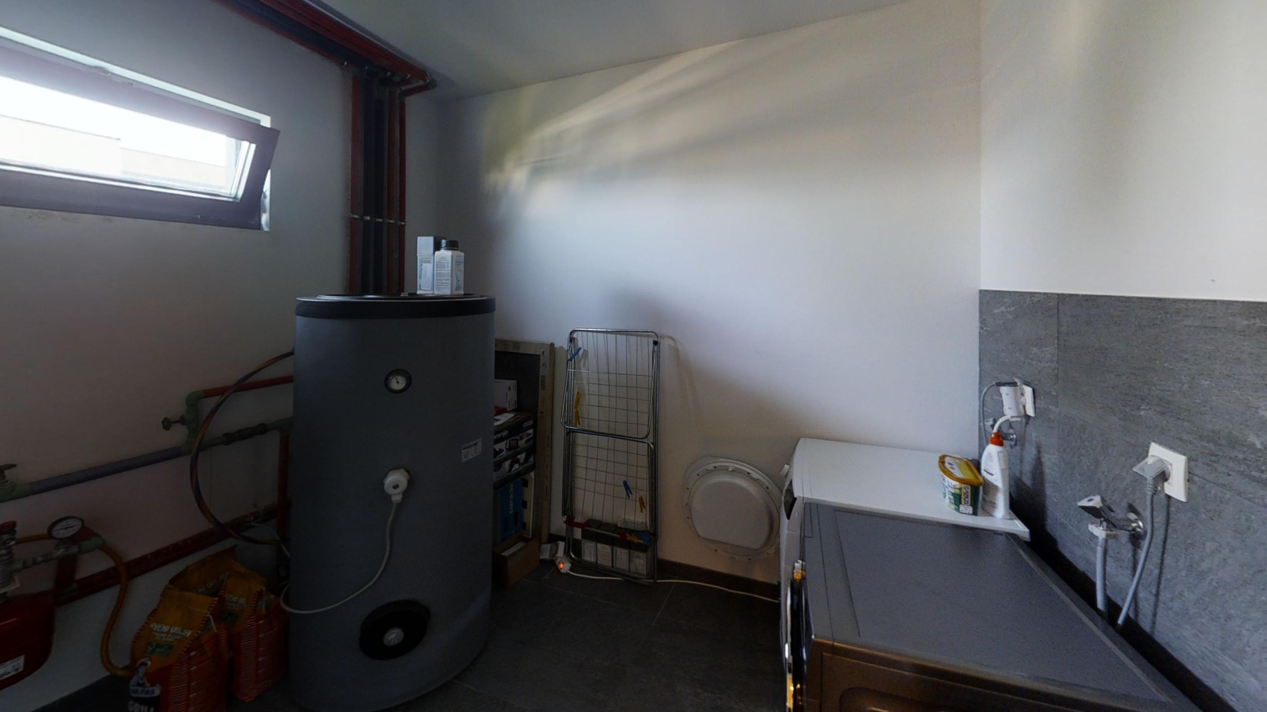 U prizemlju je smještena zatvorena garaža, sauna, jacuzzi, teretana, kupaonica te praonica rublja.